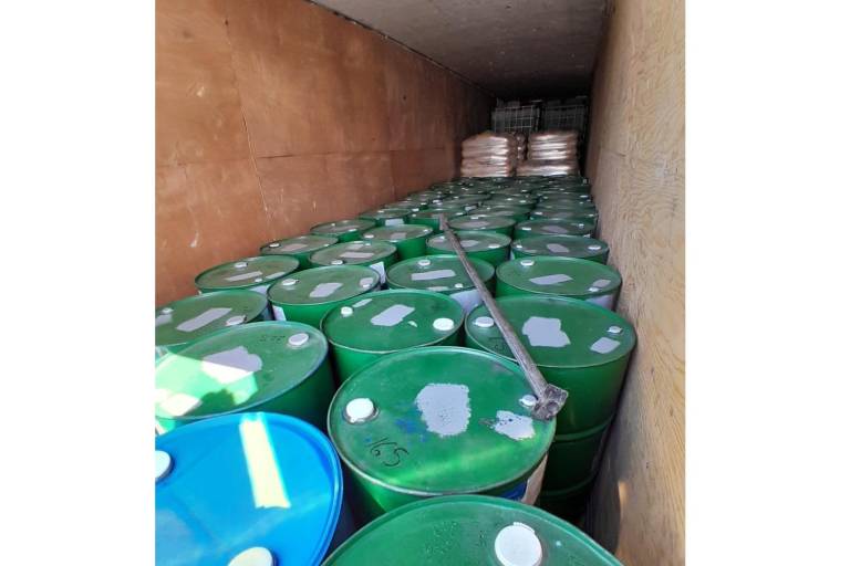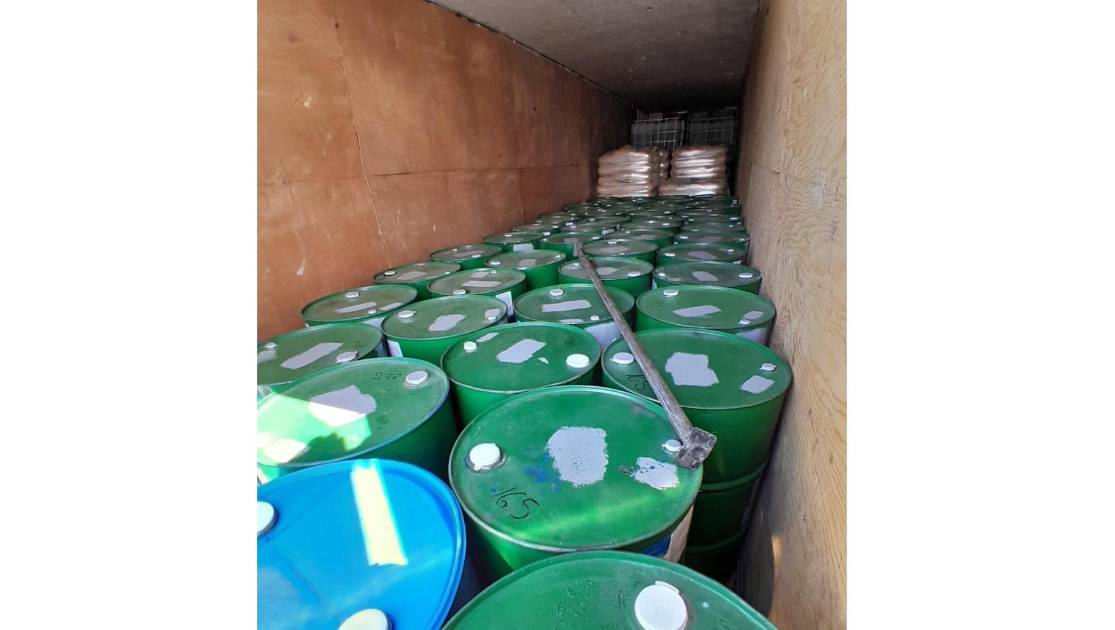En ese lugar fue aprehendido Jesús “M”, conductor de un tractocamión con su respectiva caja seca con placas de circulación del Servicio de Autotransporte Federal, donde aseguraron 10 toneladas de sosa cáustica, 8 mil 600 litros de ácido clorhídrico, 10 mil litros de acetona y 600 litros de glicerina.