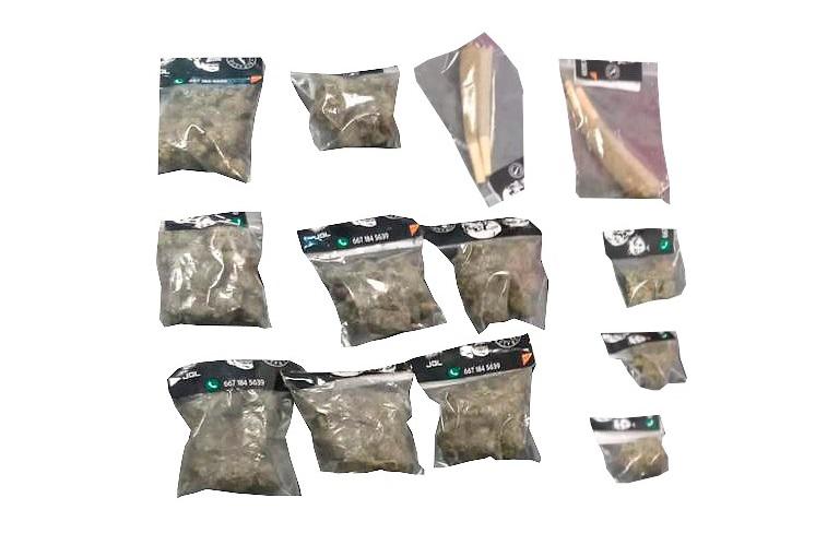 Al darle alcance, los elementos se percataron de que el joven estaba en posesión de varias bolsas plásticas y cigarros con hierba verde y seca parecida a la mariguana.