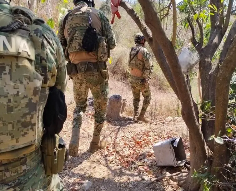 En una primera incursión en el poblado de Los Copales, municipio de Mazatlán, efectivos de la Secretaría de Marina (Semar) y de la Secretaría de Seguridad y Protección Ciudadana (SSPC) hallaron bultos ocultos entre la maleza. Tras la inspección, se contabilizaron ocho artefactos explosivos de fabricación casera, 6.5 kilogramos de marihuana, además de cargadores, cartuchos y cuatro chalecos tácticos.