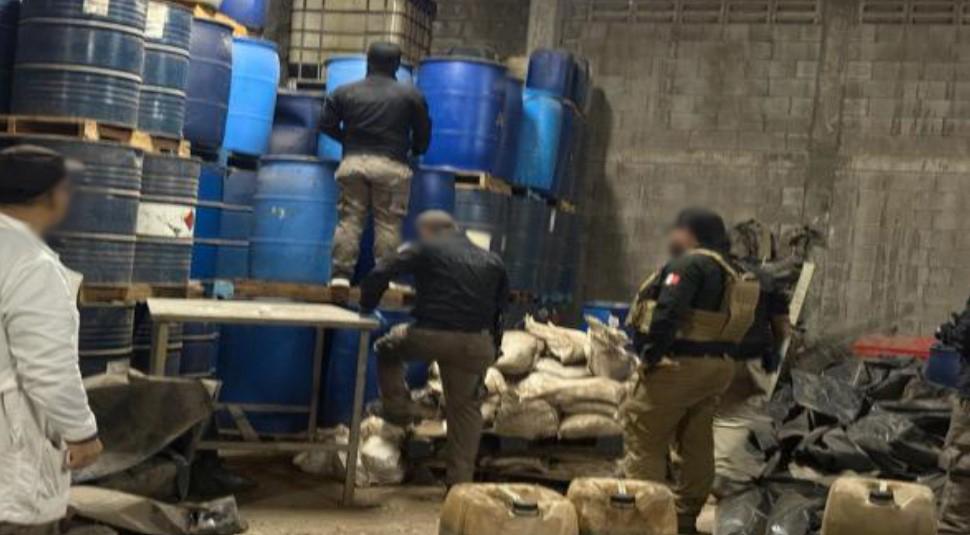 En el sitio, que operaba como un laboratorio clandestino de producción de drogas, fueron asegurados varios tambos y bidones de plástico con químicos. Las autoridades no especificaron la cantidad exacta de los recipientes ni el tipo de sustancias químicas precursoras que contenían.