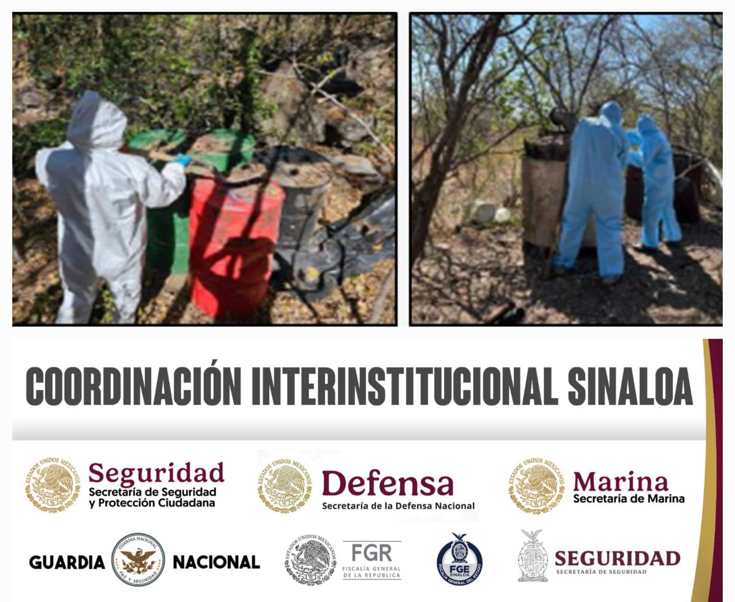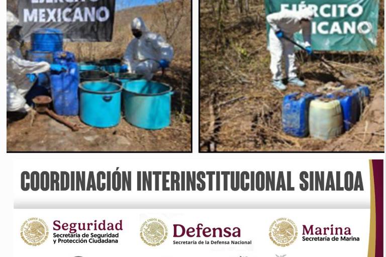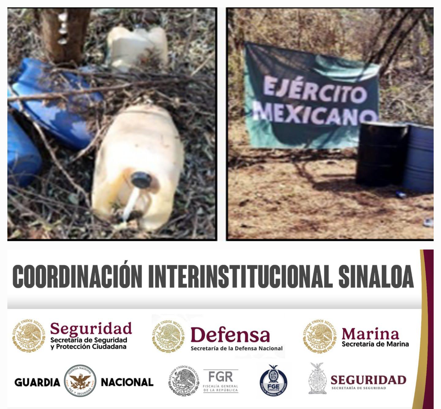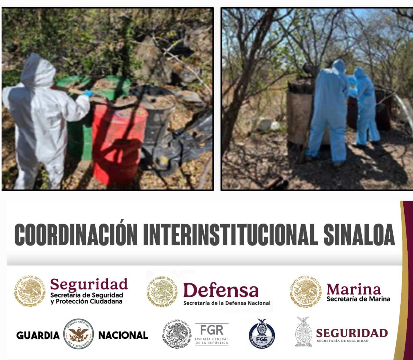 El Grupo Interinstitucional, conformado por Ejército, Guardia Nacional, Policía Estatal Preventiva, informó que en resumen, se localizaron laboratorios en los poblados de San Francisco, La Guamuchilera, Las Juntas, Ejido Los Mayos e Higueras de Abuya, en Culiacán; en los poblados de Las Amargosas y Santa Anita, en Cosalá; además de dos laboratorios en Mocorito, en los poblados de La Calera de Capirato y Terrero de Los Pachecos.