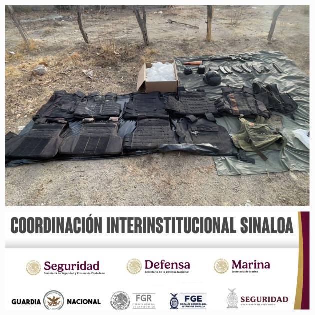 MAZATLÁN._ Personal del Ejército Mexicano, en coordinación con la Guardia Nacional, la Secretaría de Marina, la Fiscalía General de la República, la Fiscalía General del Estado y la Secretaría de Seguridad Pública Estatal, aseguró un arma de fuego, cargadores, cartuchos, presunta droga y dispositivos para arrojar ponchallantas en el municipio de Mazatlán.