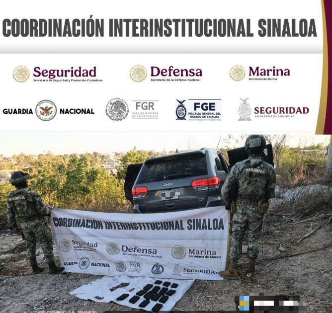 Elementos de la Secretaría de Marina aseguraron una camioneta de la marca Jeep, con reporte de robo, con los parabrisas blindados y con cartuchos de arma de fuego en su interior luego de trabajos de reconocimiento realizados en La Cruz, en el municipio de Elota.