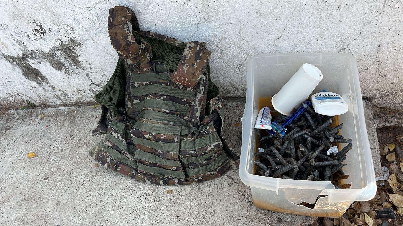 En las inmediaciones también se localizó una cubeta con ponchallantas y un chaleco táctico, presuntamente abandonados por civiles armados que viajaban en la unidad.