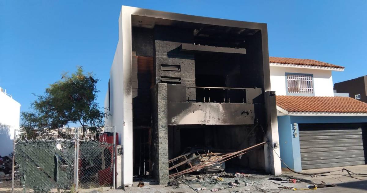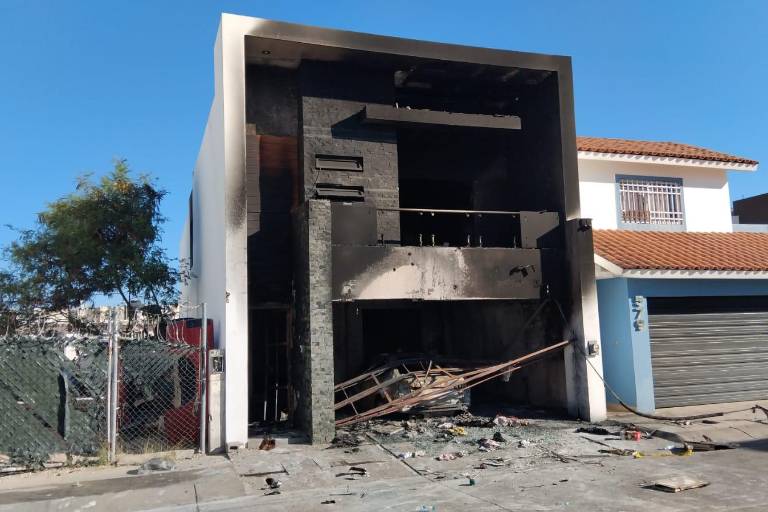 Así quedó la casa que atacaron e incendiaron el domingo en Colinas del Rey, en Culiacán