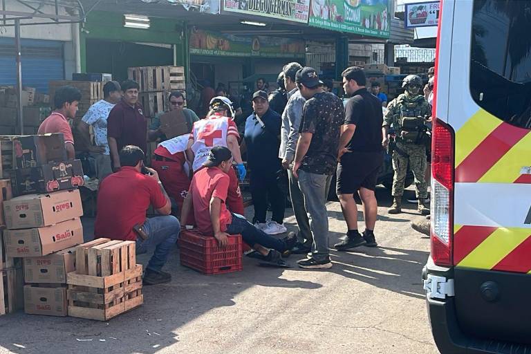CULIACÁN. _ Dos hombres resultaron heridos por disparos de arma de fuego la mañana de este lunes en el Mercado Humberto Gómez Campaña, mejor conocido como el Mercado de Abastos de Culiacán.