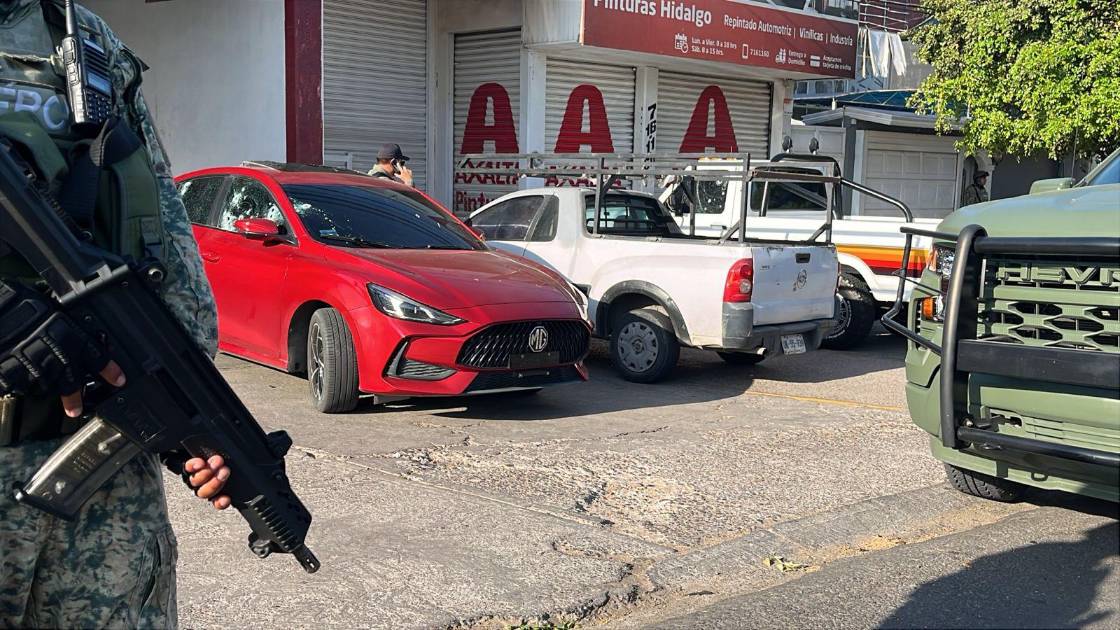 Al lugar arribaron elementos del Ejército Mexicano, quienes confirmaron los daños en tres unidades. Uno de los vehículos más afectados fue un MG color rojo, modelo reciente; otro, una camioneta Ford de modelo antiguo, presentó impactos en el cristal trasero, mientras que un Dodge Stratus fue alcanzado por al menos dos disparos en la parte trasera y en la carrocería.