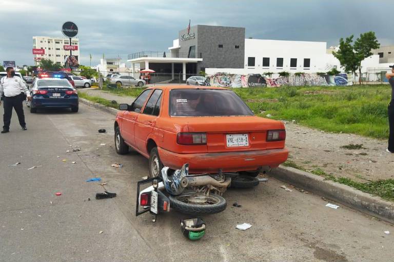 Los agentes viales indicaron que la motocicleta terminó bajo de un vehículo Nissan Tsuru que estaba estacionado.