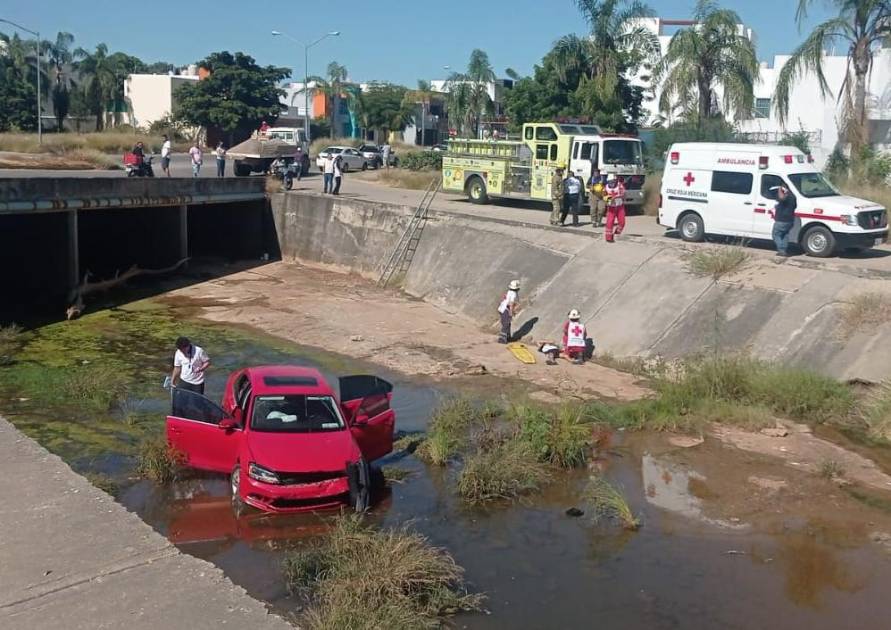 MAZATLÁN._ Un joven conductor perdió el control de su automóvil y cayó a un canal pluvial este martes en el Fraccionamiento Real del Valle.