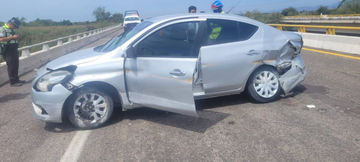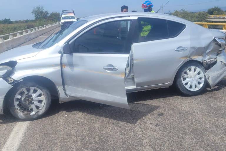 ELOTA._ Una familia resultó ilesa tras el choque de su automóvil contra el muro de contención de la Autopista Mazatlán-Culiacán, a la altura de La Cruz, Elota.