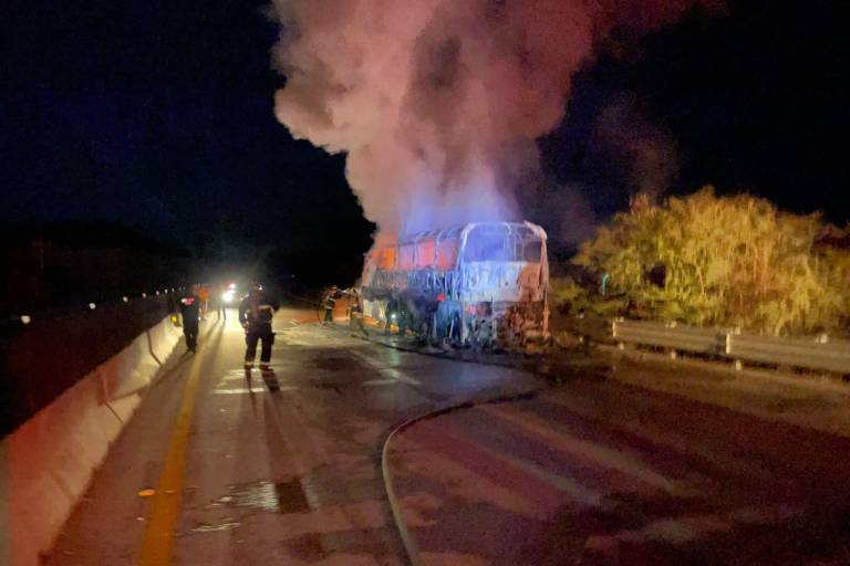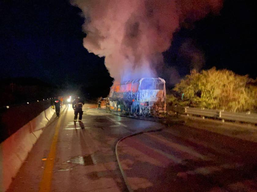 Autobús turístico se incendia en el Libramiento de Mazatlán