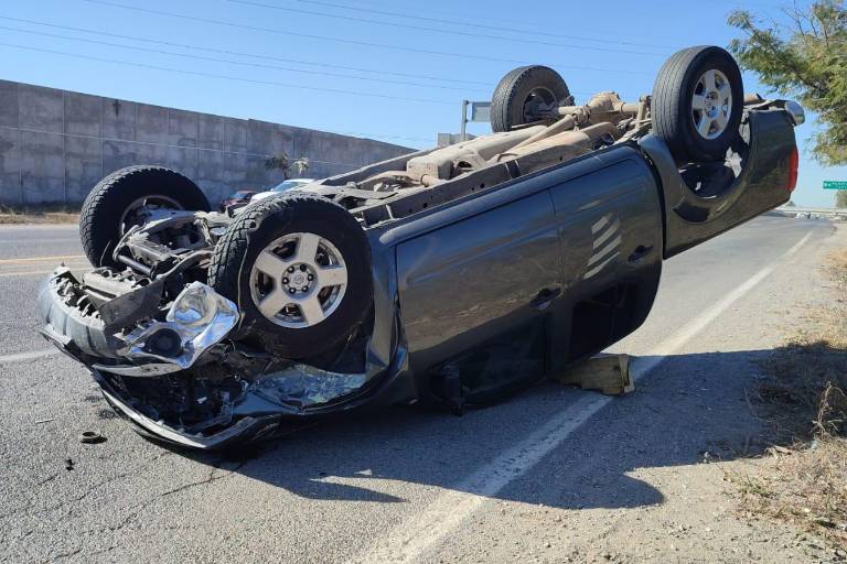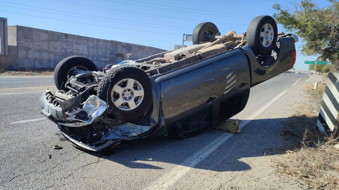 MAZATLÁN._ Una camioneta terminó volcada tras ser impactada por un automóvil que intentó una vuelta en “U” en el acceso a la autopista Mazatlán-Culiacán.
