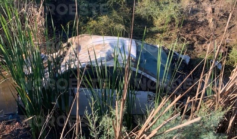 AHOME. _ Un hombre falleció la mañana de este lunes luego de que el automóvil en el que viajaba se saliera de la carretera y terminara volcado en el interior de una obra hidráulica en el Valle de El Carrizo.