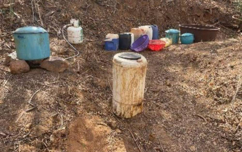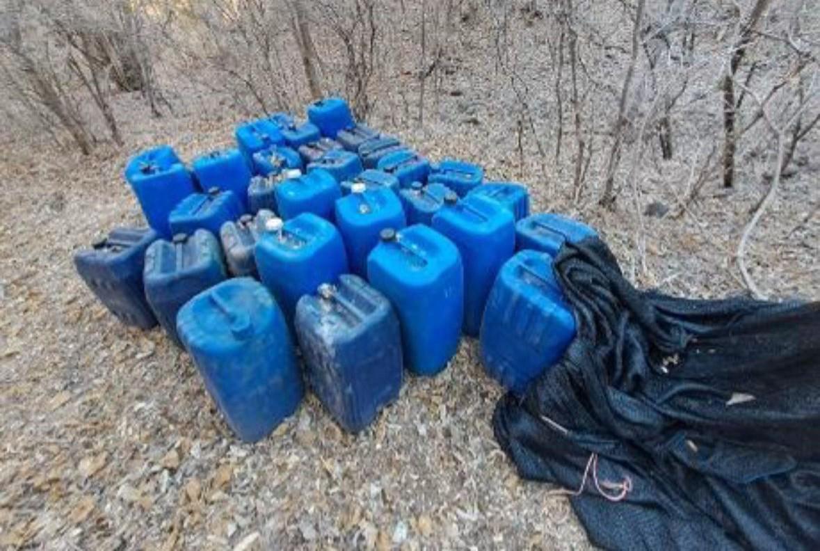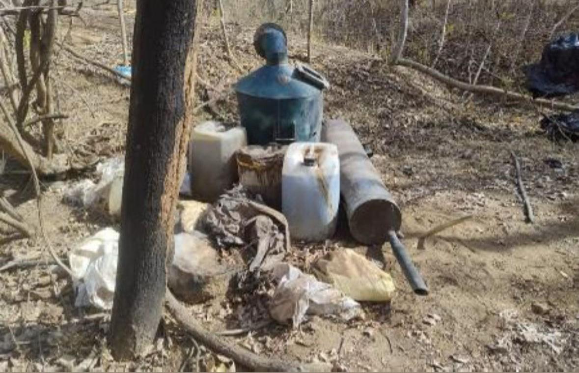 Durante los recorridos de reconocimiento, se localizaron asentamientos con diversas sustancias químicas, así como equipo especializado, incluyendo reactores, bidones, tambos, barriles, costales, condensadores, tanques de gas y centrifugadores.
