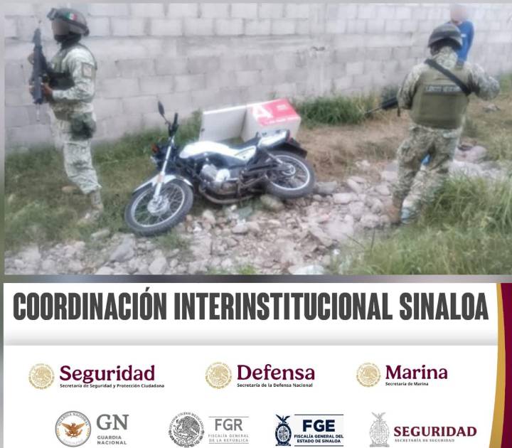 En un hecho distinto, en el municipio de Mazatlán, elementos que realizaban recorridos de reconocimiento terrestre en la colonia Real del Valle ubicaron una motocicleta en aparente estado de abandono.