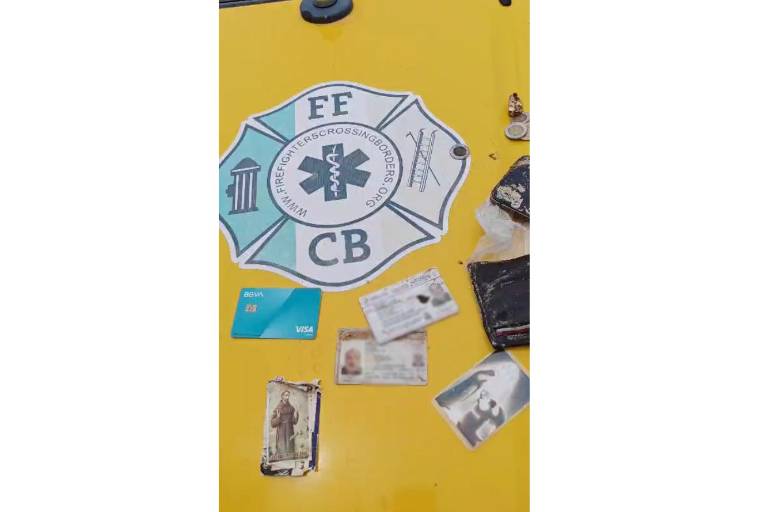 Entre las pertenencias mostradas en la grabación se observan identificaciones oficiales, una billetera negra, una tarjeta de débito, un teléfono celular dañado, monedas, un broche, una base de cargador, un anillo de oro con un símbolo de corona, así como imágenes religiosas de San Francisco de Asís y de la Virgen María.