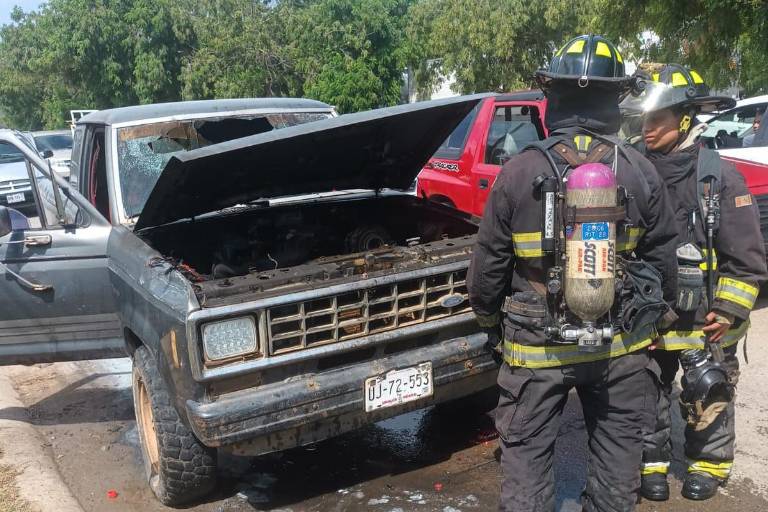 Bomberos sofocan conato de incendio en camioneta, en Mazatlán