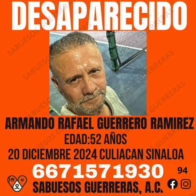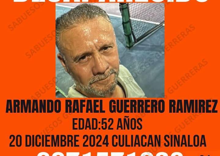 CULIACÁN._ Buscan a Armando Rafael Guerrero Ramírez, de 52 años, desaparecido este viernes 20 de diciembre, cerca de el Limón de los Ramón, al norte de Culiacán.