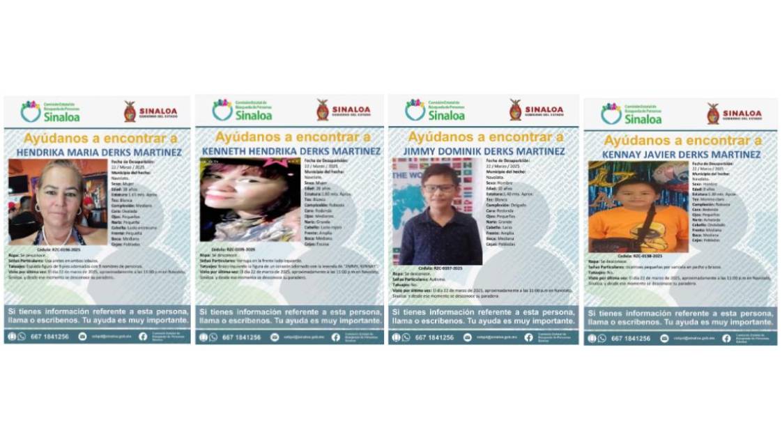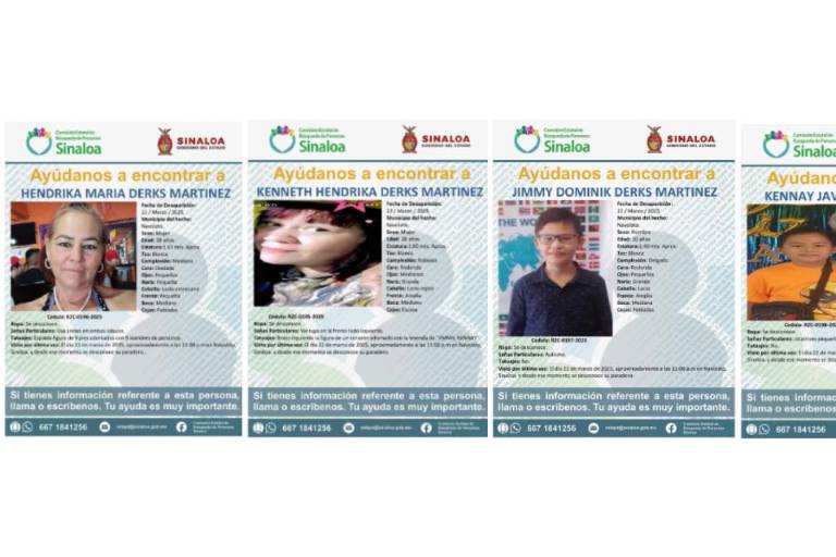 Ayer, fuentes confirmaron a Noroeste que la familia, con excepción de una mujer, había sido liberada. Sin embargo, horas después, la Comisión Estatal de Búsqueda de Personas emitió fichas de búsqueda para dos mujeres y dos menores.