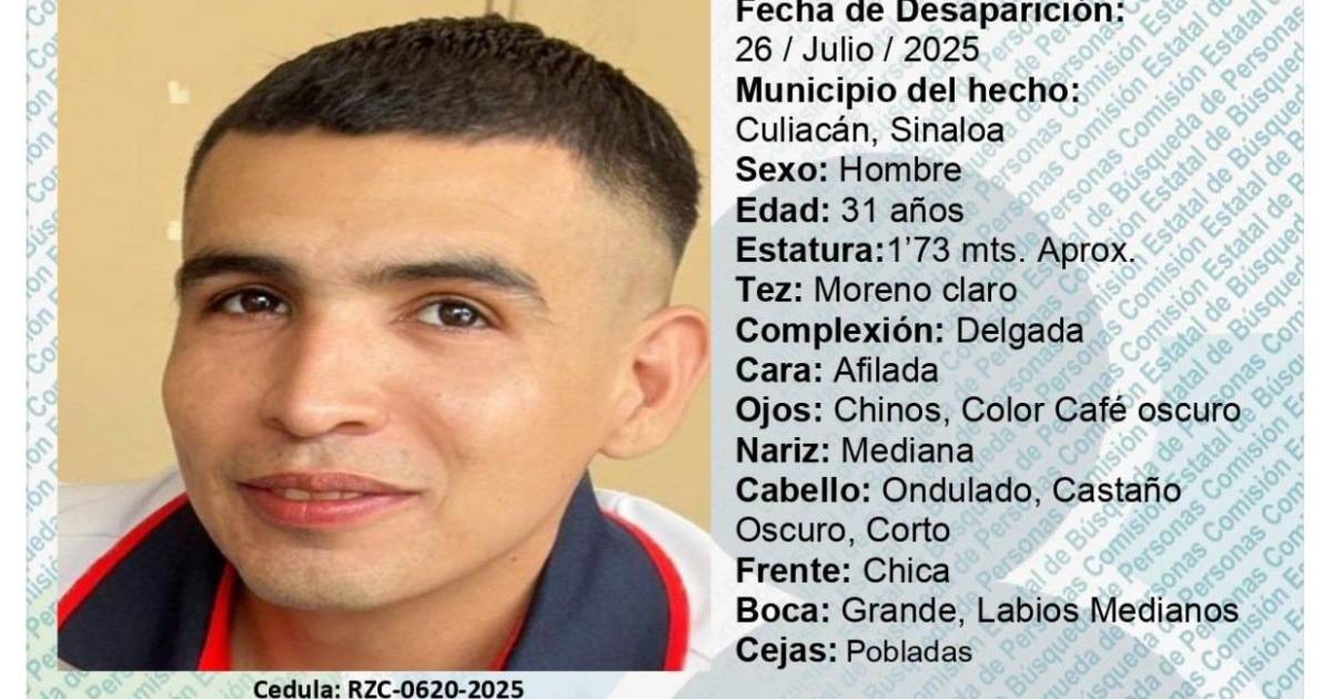 La Comisión Estatal de Búsqueda de Personas emitió una ficha de localización para Jesús Verdugo López, de 31 años de edad, reportado como desaparecido desde el pasado sábado 26 de julio en la sindicatura de Culiacancito, en Culiacán.