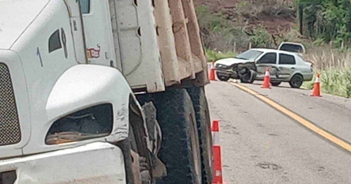 MAZATLÁN._ Un automóvil sedán chocó contra un camión volteo en la carretera Libre Mazatlán-Culiacán, en la mañana de este sábado.