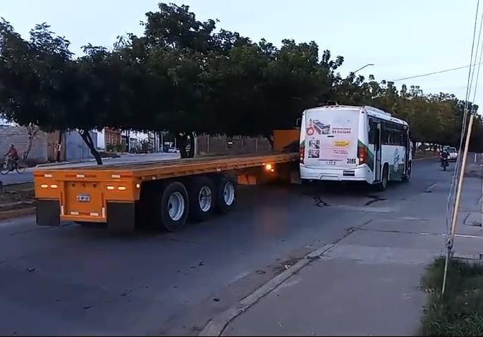 El operador del tráiler aseguró no poder avanzar hacia adelante, porque chocaría contra el camión y menos hacia atrás, porque el camión le obstruye la visión para maniobrar.