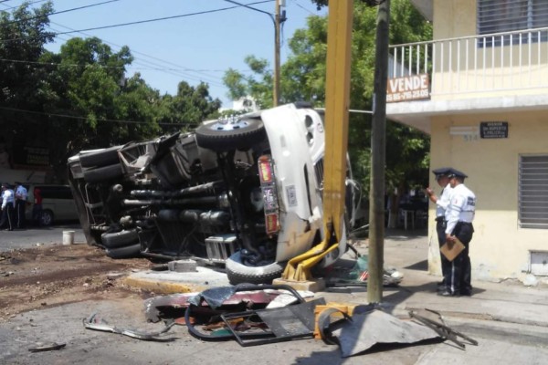 Se dijo que el camión Huizaches circulaba por la calle Ruperto L. Paliza y al llegar a la Constitución fue golpeado por la otra unidad, y se volcó.
