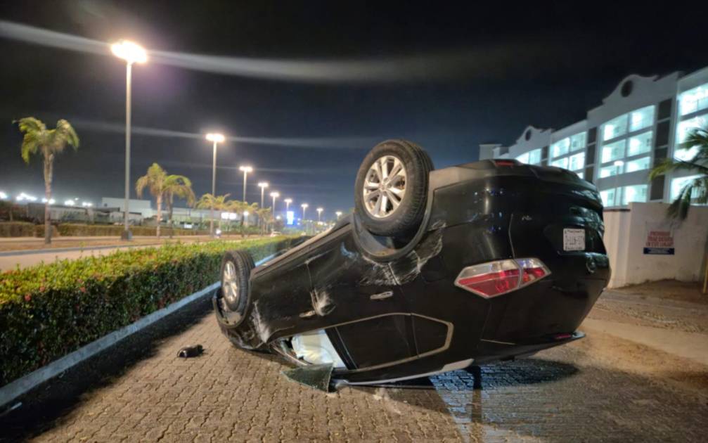 La volcadura se registró a las 22:45 horas, sobre la lateral de norte a sur del bulevar Marina Mazatlán.