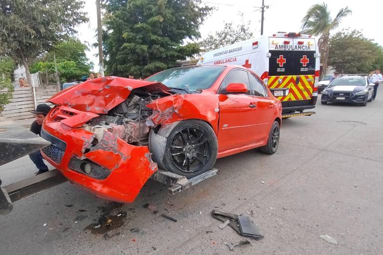 LOS MOCHIS._ Un saldo de tres personas hospitalizadas, entre ellas una menor de edad, y cuantiosos daños materiales que incluyeron el derrumbe de la fachada de una vivienda, fue el dramático resultado de un accidente de tránsito registrado en las calles del sector Las Flores de esta ciudad.