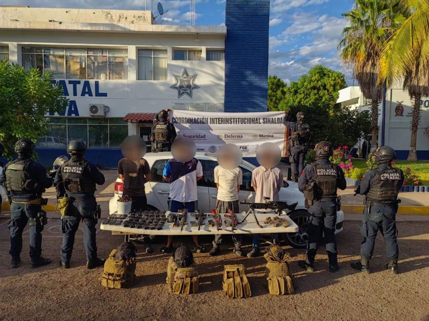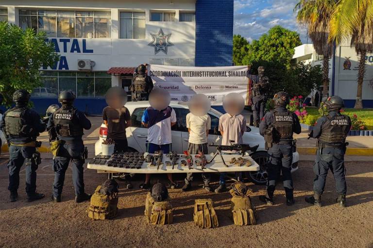 Un total de cuatro civiles, entre ellos un menor de edad, en posesión de armas largas y equipo táctico fueron detenidos por las autoridades tras el despliegue de un operativo en el fraccionamiento Valle Alto, en Culiacán.