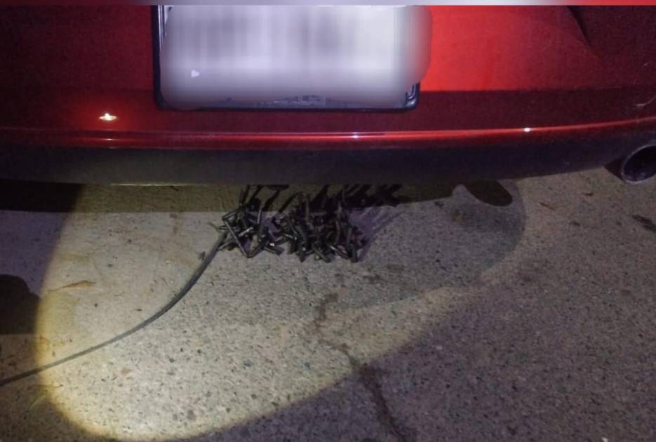 Al verificar los datos del vehículo se confirmó que contaba con reporte de robo, además de que dentro resguardaba ponchallantas.