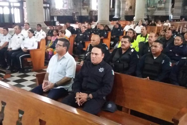 La misa fue oficiada por el padre J. Trinidad Hernández Dávila, quien pidió por los agentes que han caído en el ejercicio de su profesión.