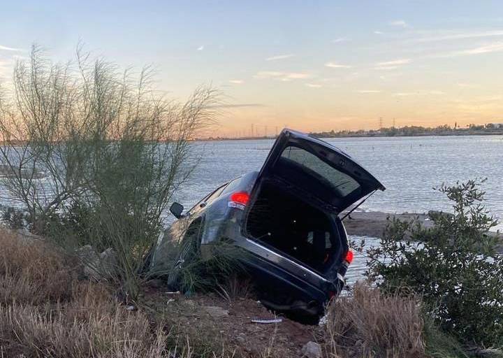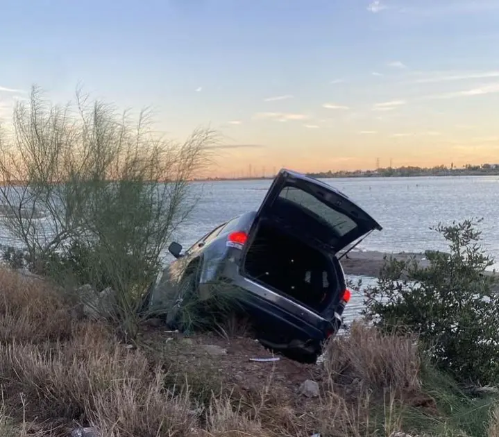 Choca vehículo y queda al borde del mar en la carretera Mochis-Topolobampo