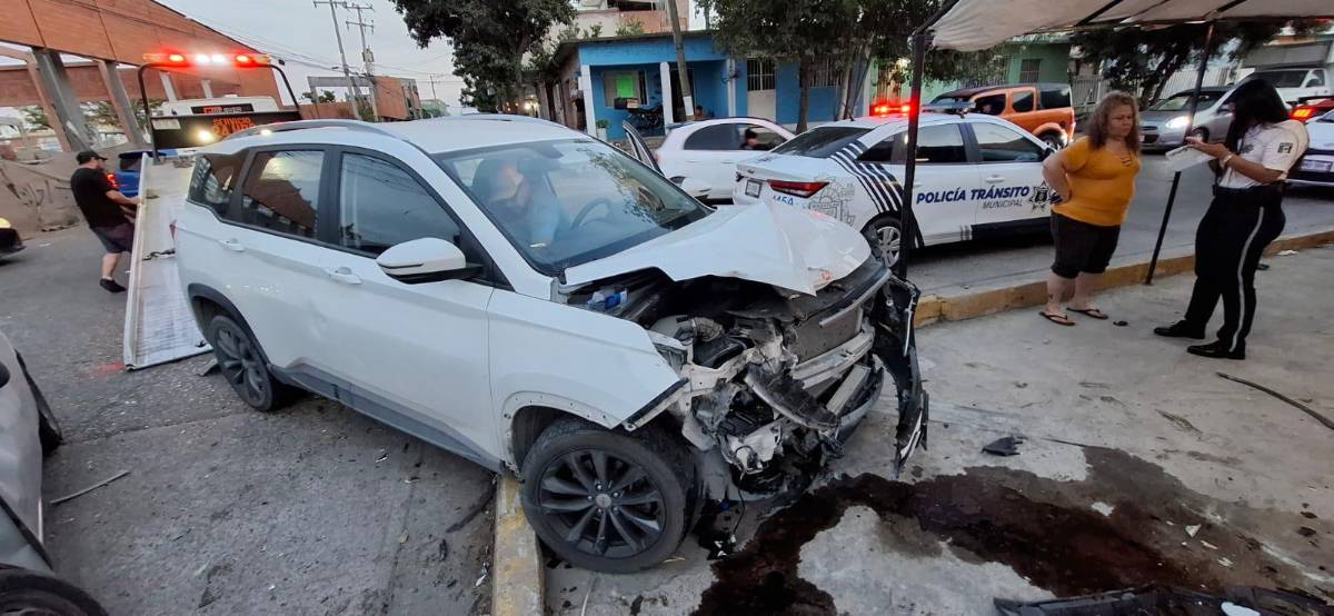 La conductora de la camioneta Chevrolet Captiva que circulaba sobre la Pérez Arce, no hizo el alto respectivo al cruzar la Agustín Melgar y se impactó contra un Nissan March qué circulaba con preferencia sobre dicha calle.