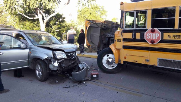 MAZATLÁN._ Una camioneta y un camión de transporte escolar participaron en un choque esta mañana en la esquina de la calle Zeus yBadiraguato, en la Colonia Ampliación 20 de Noviembre.