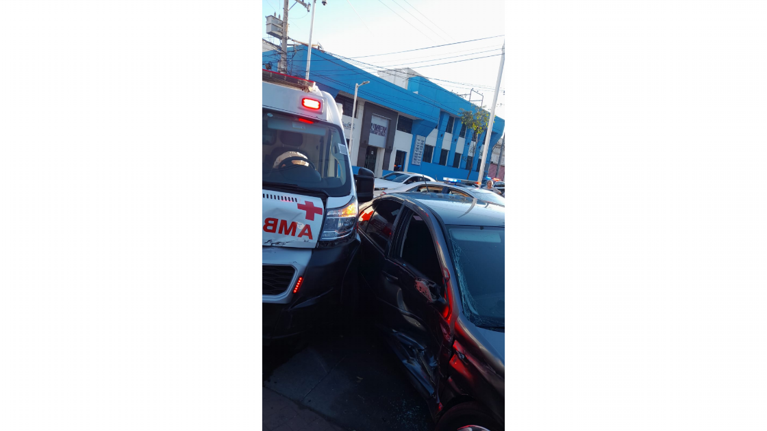 Al pasar por la calle Andrade y Colón, en el Centro, la ambulancia fue chocada por vehículo.