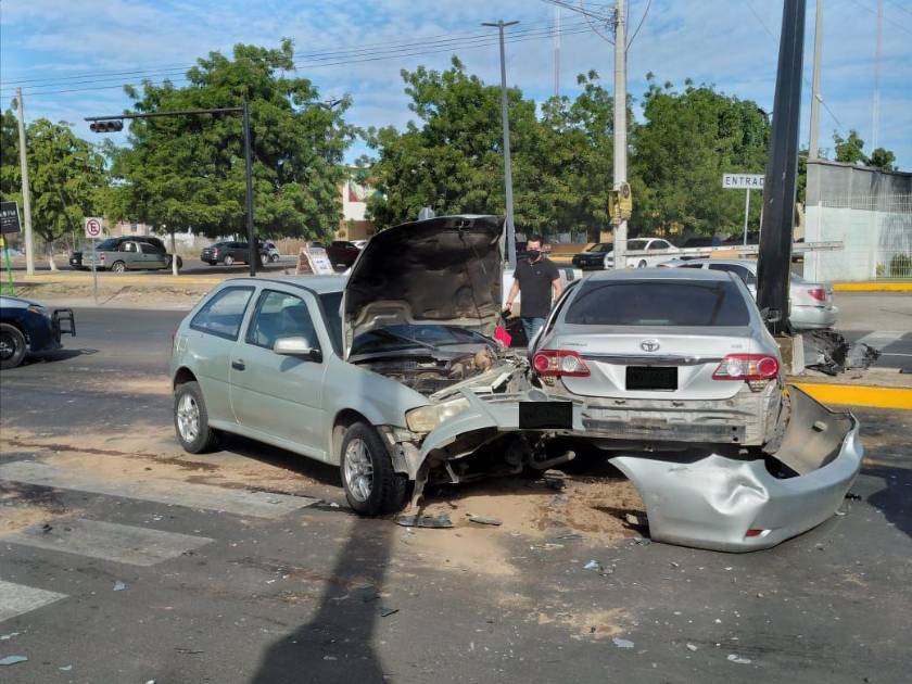 CULIACÁN._ Tres personas lesionadas y daños materiales en miles de pesos fue el resultado de un choque entre dos automóviles la mañana de este sábado por el bulevar Francisco I. Madero a la altura del Fraccionamiento Villa del Real.