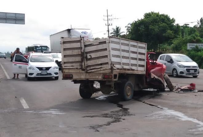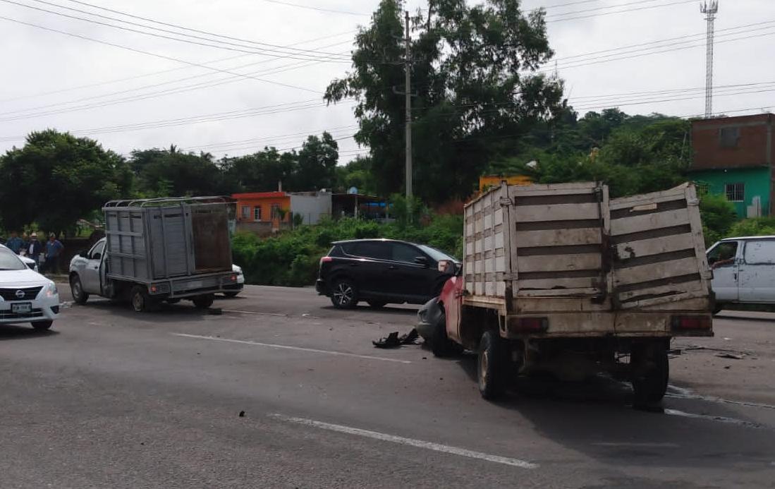 MAZATLÁN._ Dos camionetas tipo estaquitas chocaron por alcance en el entronque a la altura de la comunidad de la Urraca.