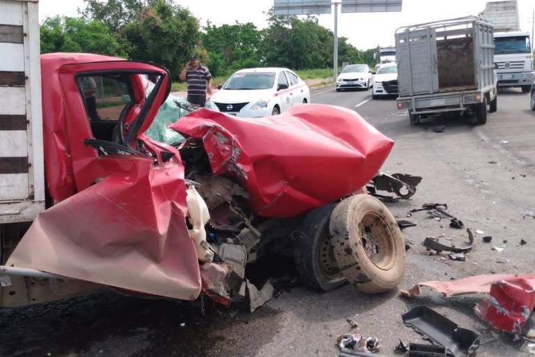 Por el impacto ambas unidades quedaron inhabilitadas para circular; la cabina de la camioneta roja quedó totalmente destruida, pero su conductor logró salir por su propio pie y se retiró del lugar, dejando abandonada su unidad.