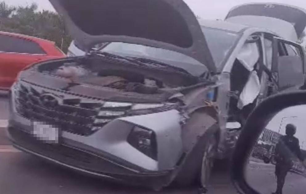 Debido a la fuerza del golpe, el costado del conductor se quedó sin puerta y la unidad quedó destrozada, mientras que el remolque quedó atravesado entre los dos carriles.