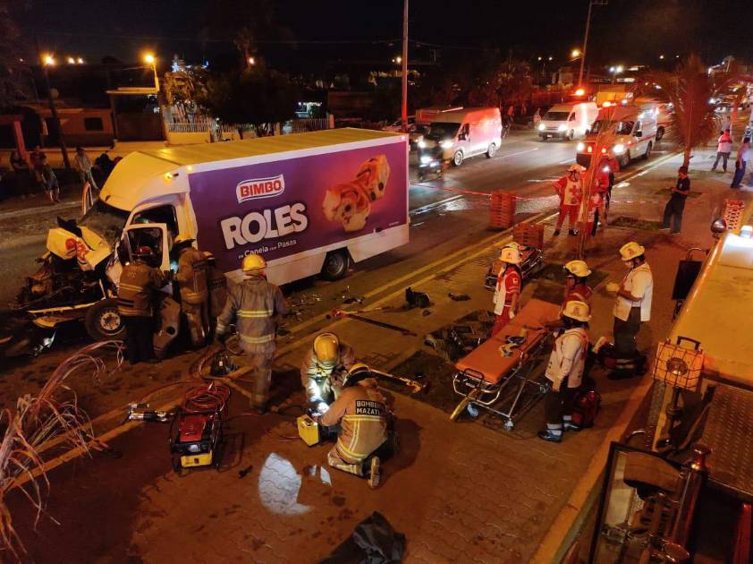 MAZATLÁN._ Un conductor quedó prensado en la cabina de un camión de una empresa panificadora, tras chocar por alcance contra una pipa en la Carretera Internacional al norte de Mazatlán.