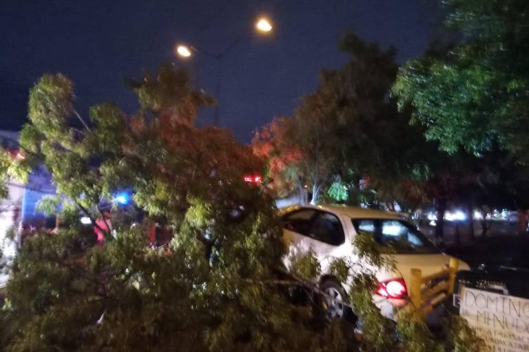 La conductora de un Nissan Sentra perdió el control del volante al circular sobre una curva de la zona y se subió al camellón central de la avenida donde derribó dos árboles, luego se detuvo al impactar sobre el tercero.