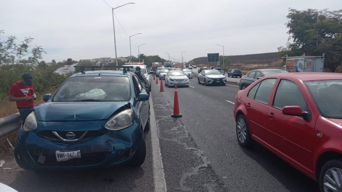 Un choque entre vehículos dejó daños materiales por la carretera La Costerita en el sector sur de Culiacán, cerca del sector La Primavera.