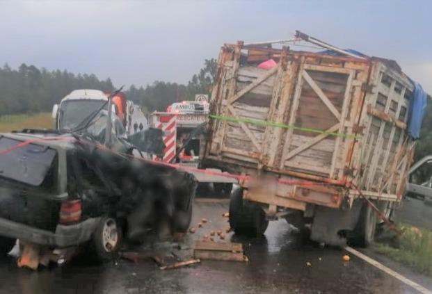 Según el parte del accidente, la camioneta Jeep Grand Cherokee donde viajaba una familia de cuatro integrantes chocó por alcance la parte posterior de una camioneta Chevrolet con estaquitas tipo ganadera y dos pasajeros de la Cherokee perdieron la vida en el lugar al quedar prensados dentro de la unidad.