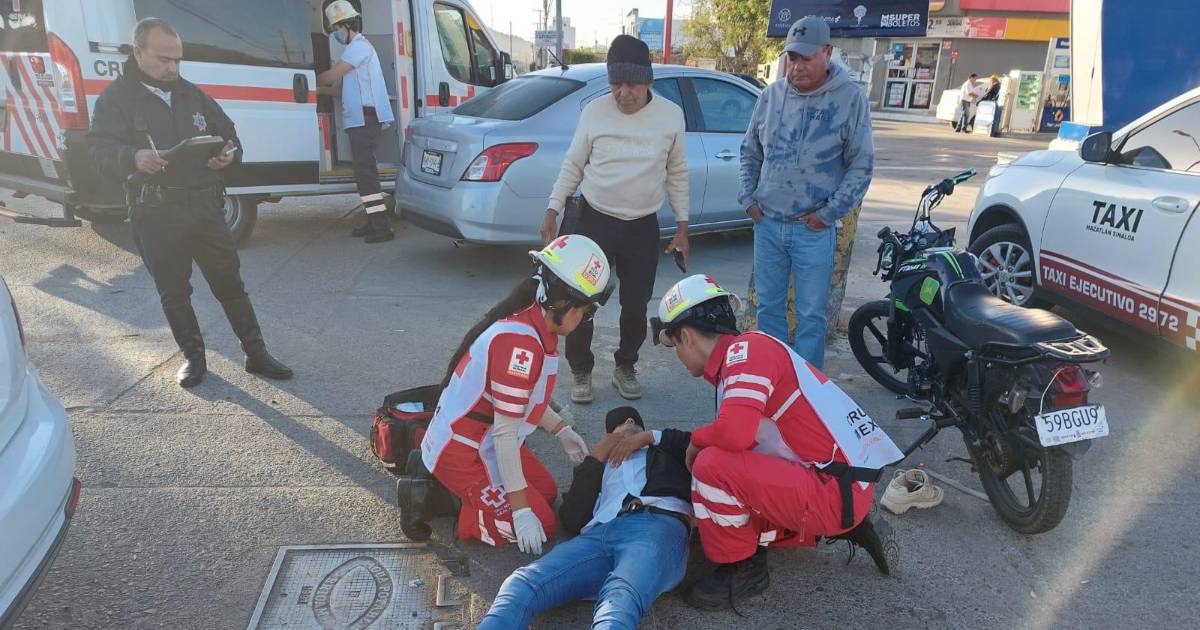 Socorristas de Cruz Roja que respondieron al reporte de emergencia, valoraron al motociclista, quien presentó probable fractura en su pierna derecha.
