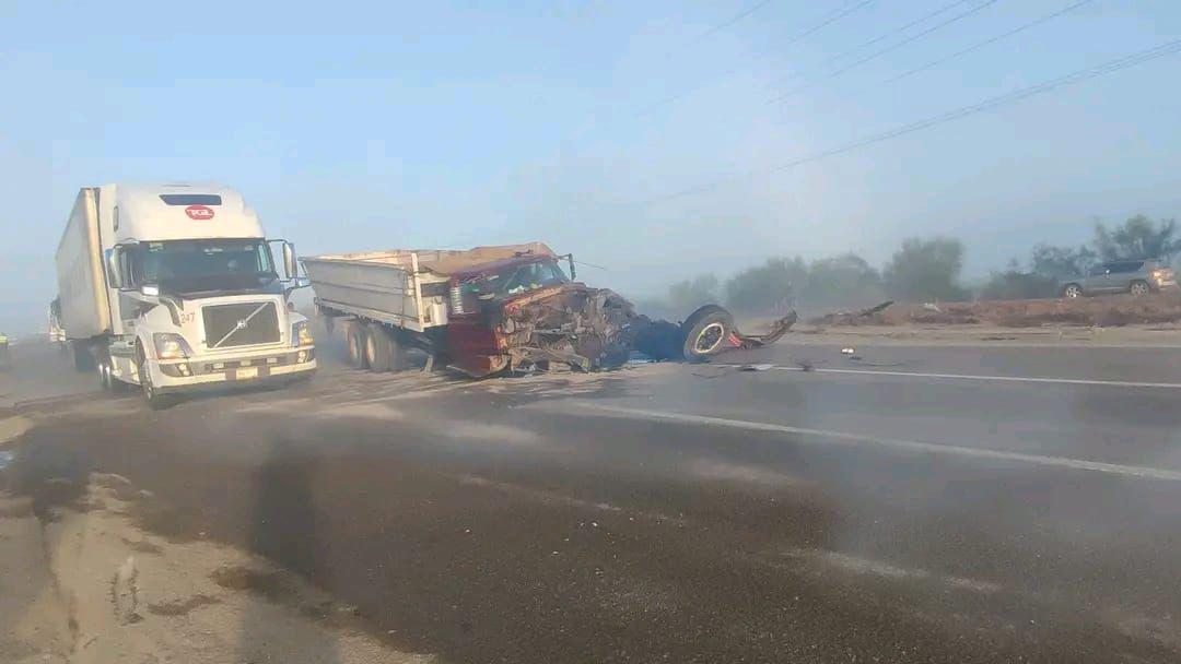 En la zona también se encuentra otra unidad de carga con golpes en la parte frontal y otro vehículo desviado de la carretera con visibles daños, presuntamente por un posible accidente ocasionado por el tráiler de gasolina.