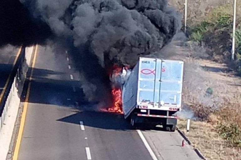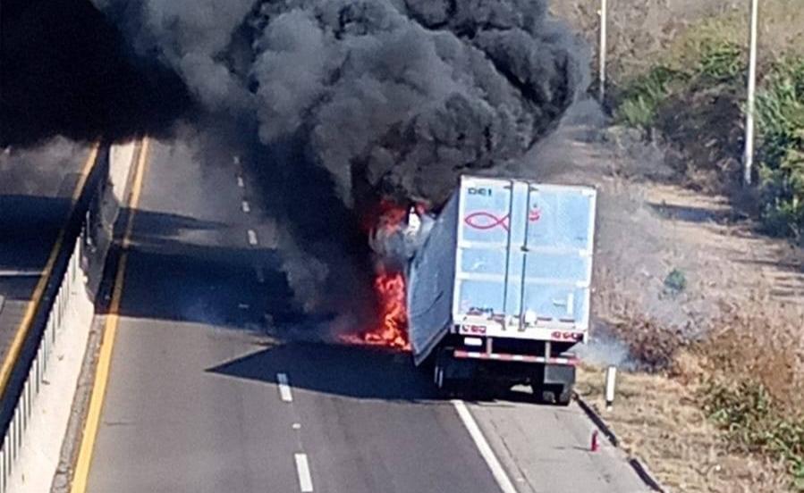 Cierran por hora y media la Mazatlán-Culiacán por incendio de tráiler cerca de Mármol