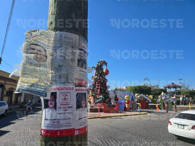 En luminarias, tambos y diversas estructuras del mobiliario urbano, colectivos de búsqueda y familias particulares han colocado fichas de personas desaparecidas en espacios públicos de la cabecera municipal de Rosario.