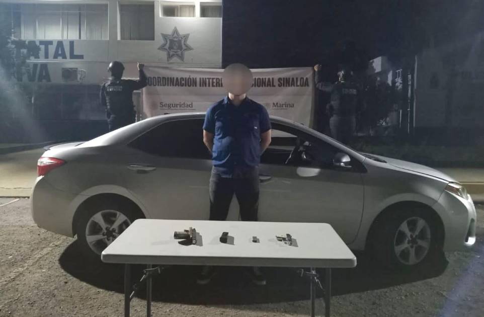 La acción tuvo lugar cuando los agentes circulaban por la zona y detectaron un vehículo Toyota Corolla que obstruía la vialidad. Al aproximarse, los elementos se percataron de que el conductor portaba armamento, por lo que procedieron a su detención.