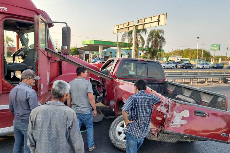 De acuerdo a los datos proporcionado un tráiler de color rojo que traía alimento para ganado circulaba en el tramo del campo El Diez a la Avenida Álvaro Obregón y al subir el puente de la Geovanni Zamudio se registró el accidente tipo carambola.